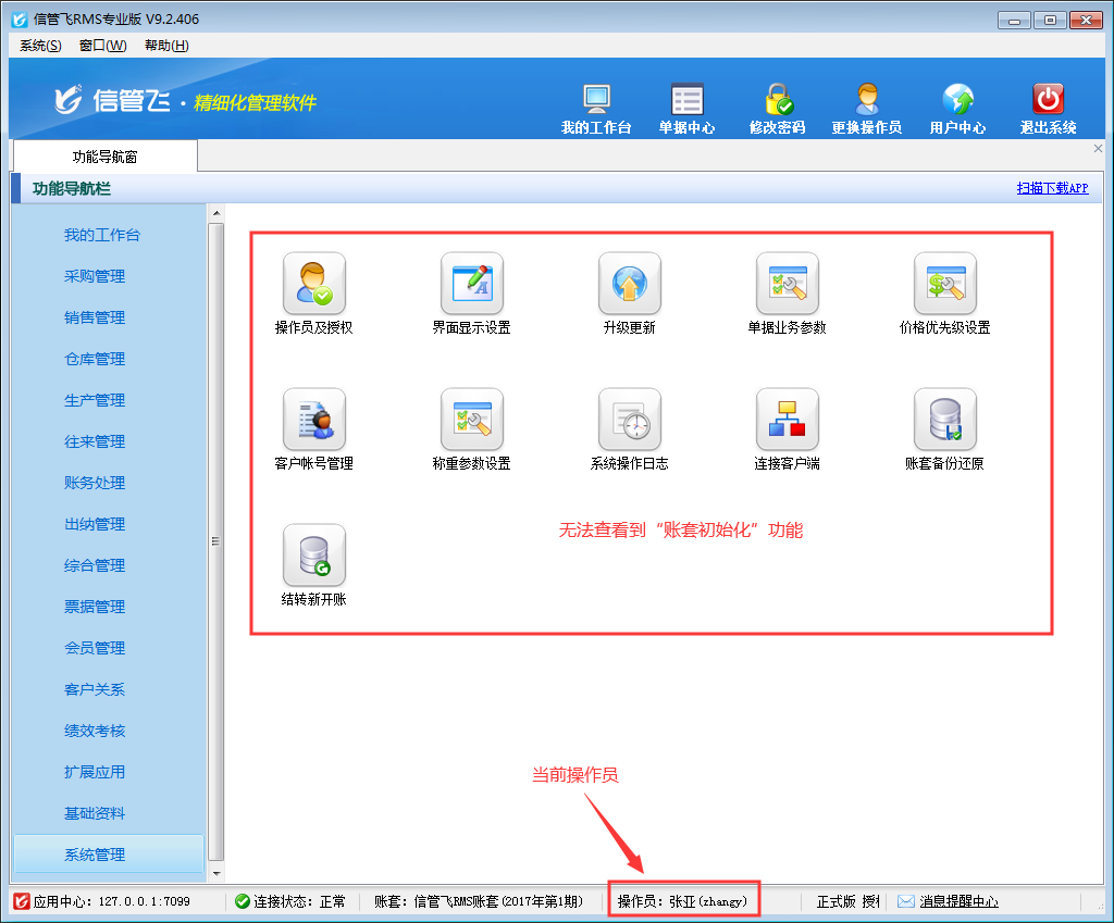 賬套初始化一般用于在正式使用軟件前,對賬套中的數據進行初始化,以便重新錄入數據。一般在試用軟件期間會輸入一些試用的數據,比如采購入庫單、銷售出庫單或一些訂單等信息,當試用結束后想刪除這些無用的數據錄入正式數據時,可以通過本系統的“帳套初始化”功能來一次性清除,方便快捷(如下圖所示)。 執行賬套初始化操作后,會刪除賬套內相應的數據,因此務必提前做好備份,謹慎操作!為了避免操作員誤操作,導致數據丟失,軟件內支持設置操作員不可進行賬套初始化操作,下面以信管飛RMS為例來演示一下具體的操作步驟。