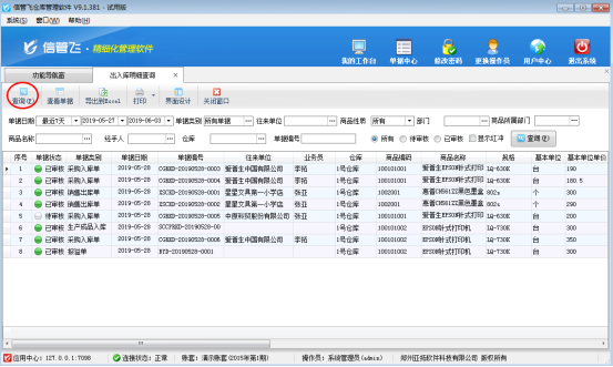 信管飛RMS和信管飛倉(cāng)庫(kù)管理軟件都可以對(duì)倉(cāng)庫(kù)信息進(jìn)行管理,都可以查詢商品庫(kù)存數(shù)量。軟件可以統(tǒng)計(jì)商品出入庫(kù)的明細(xì)情況,對(duì)商品出入庫(kù)情況一目了然。本篇文章以信管飛倉(cāng)庫(kù)管理軟件為例介紹一下如何查詢商品出入庫(kù)明細(xì)。 在功能導(dǎo)航窗點(diǎn)“倉(cāng)庫(kù)管理”—》“相關(guān)查詢統(tǒng)計(jì)”—》“出入庫(kù)明細(xì)查詢”,即可進(jìn)入商品出入庫(kù)明細(xì)查詢界面,如下圖所示:圖1 圖2 在出入庫(kù)明細(xì)查詢界面,點(diǎn)擊“查詢”進(jìn)行統(tǒng)計(jì)商品庫(kù)的出入庫(kù)明細(xì)情況。可以匯總一定時(shí)間段內(nèi)每種商品的出入庫(kù)明細(xì)記錄,可以按照單據(jù)類別、商品類別、商品性