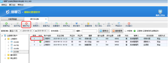 信管飛出納記賬軟件標(biāo)準(zhǔn)版和專業(yè)版在新增保存日記賬憑證后都可以直接審核憑證,憑證審核后,不允許直接刪除。客戶如果需要?jiǎng)h除已審核的憑證,需要先反審憑證,再進(jìn)行刪除。下面我們介紹一下在信管飛出納記賬軟件專業(yè)版中如何刪除已審核的日記賬憑證? 在功能導(dǎo)航窗點(diǎn)“出納管理”—》“銀行日記賬”即可進(jìn)入“銀行日記賬”界面,對(duì)“已審核”的憑證進(jìn)行刪除時(shí),系統(tǒng)會(huì)提示“當(dāng)前憑證已審核,無法執(zhí)行刪除操作!”,如圖1所示。圖1 在銀行日記賬列表界面,如圖2所示,點(diǎn)擊“更多操作”——》“反審憑證”,系統(tǒng)彈出提示信息