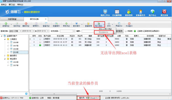 信管飛出納記賬軟件允許設置多個操作員進行登錄軟件,軟件支持將現金日記賬、銀行日記賬以EXCEL的形式導出放到自定義的文件夾內以供備份或保存,如果需要設置操作員不允許導出日記賬列表信息,如何設置?本文以信管飛出納記賬軟件專業版為例,示范下如何設置操作員不可導出日記賬列表信息。 在功能導航窗點擊“系統管理”—》“操作員及授權”打開操作員管理及授權界面,選擇操作員“張麗”,在功能模塊權限界面,選擇“出納管理”—》“銀行日記賬”,在導出權限下,把銀行日記賬“導出”權限勾選取消后保存權限,如下圖1所示:圖1