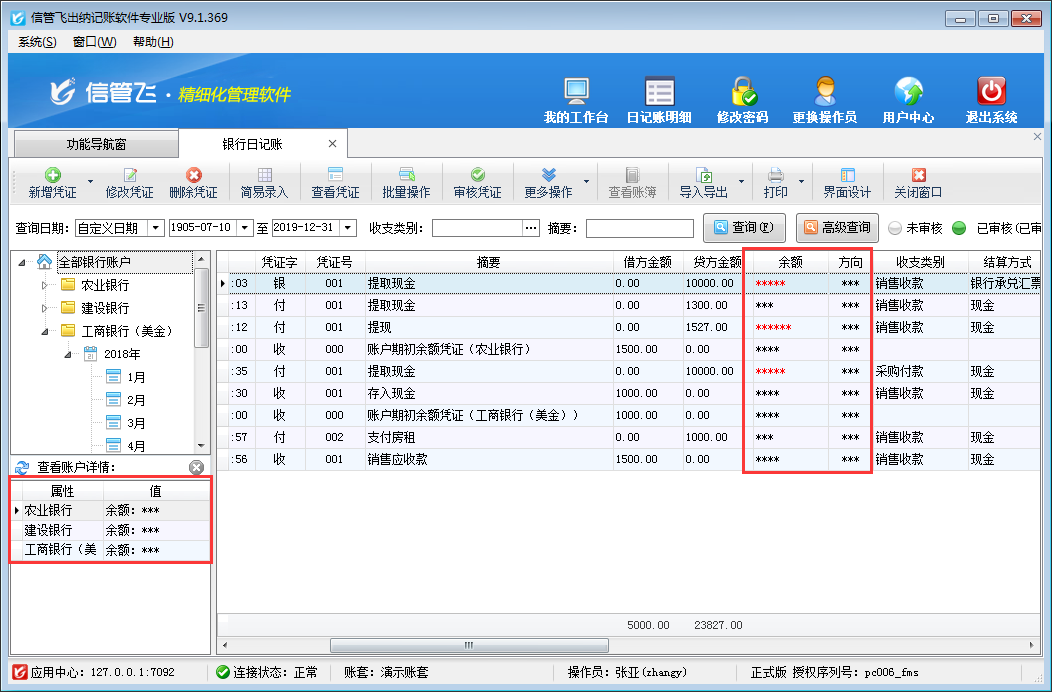 信管飛出納記賬軟件、信管飛RMS標準版和專業(yè)版都支持設(shè)置操作員不可查看出納日記賬資金賬戶余額權(quán)限,本篇文章以信管飛出納記賬軟件專業(yè)版為例詳細介紹一下如何設(shè)置操作員不可查看出納日記賬資金賬戶余額。 在功能導(dǎo)航窗點“系統(tǒng)管理”→“操作員及授權(quán)”即可進入“操作員管理及授權(quán)”界面,選中操作員賬號,在“其他操作權(quán)限”界面將“不可查看出納日記賬資金賬戶余額”權(quán)限勾選上,如下圖一所示,設(shè)置操作員賬號“張亞”不可查看出納日記賬資金賬戶余額。圖一 設(shè)置操作員權(quán)限 設(shè)置完成之后,我們使用操作員“張亞”登陸