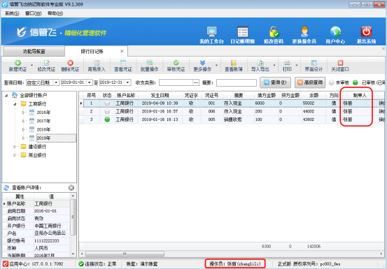 信管飛出納記賬軟件、信管飛RMS標準版和專業(yè)版都支持設(shè)置操作員不可查看其他人員錄入的出納憑證的權(quán)限,本篇文章以信管飛出納記賬軟件專業(yè)版為例詳細介紹一下如何設(shè)置操作員不可查看其他人員錄入的出納憑證。 在功能導(dǎo)航窗點“系統(tǒng)管理”—》“操作員及授權(quán)”即可進入“操作員管理及授權(quán)”界面,選中操作員賬號,在“其他操作權(quán)限”界面將“不可查看其他人員錄入的出納憑證”權(quán)限勾選上,如下圖1所示,設(shè)置操作員賬號“張麗”不可查看其他人員錄入的出納憑證。圖1 設(shè)置操作員權(quán)限 設(shè)置完成之后,我們使用操作員“張麗”