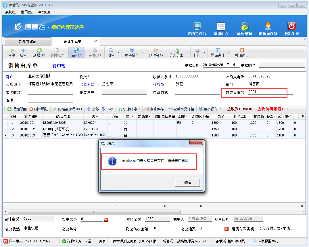 亞拓軟件自主研發(fā)的信管飛RMS、信管飛送貨單軟件、信管飛倉(cāng)庫(kù)管理軟件等都支持開(kāi)單后自動(dòng)生成單據(jù)編號(hào),另外,軟件也支持錄入自定義編號(hào)(不是單據(jù)編號(hào)),用戶可以在自定義編號(hào)內(nèi)錄入訂單合同號(hào)等信息,為了避免錄入的自定義編號(hào)出現(xiàn)重復(fù),軟件支持參數(shù)設(shè)置自定義編號(hào)不可重復(fù)。 以信管飛RMS為例,在“系統(tǒng)管理”—》“系統(tǒng)參數(shù)配置”—》“業(yè)務(wù)參數(shù)”內(nèi)將“數(shù)據(jù)可否重復(fù)參數(shù)”中的“自定義單據(jù)編號(hào)可重復(fù)”參數(shù)的勾選取消,然后保存設(shè)置。如下圖1所示:圖1 設(shè)置完成后,打開(kāi)功能導(dǎo)航窗的“銷售管理”—》“銷售出庫(kù)