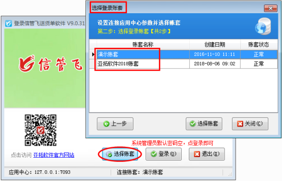 信管飛RMS、信管飛送貨單軟件、信管飛出納記賬軟件、信管飛倉庫管理軟件等都支持免費下載安裝試用。試用版本中會存在一個演示賬套。演示賬套中有演示數據,方便試用軟件功能(賬套即賬套數據庫,這是一個會計業務引申出來的概念,賬套數據庫中存儲業務數據)。如后續購買為正式版本,可以繼續使用演示賬套。為了區分賬套數據,軟件支持修改賬套的名稱。 以“信管飛送貨單軟件”為例,示范下如何修改賬套的名稱。打開紅色的應用中心程序(應用中心運行后桌面右下角會顯示相應的圖標,點擊即可打開應用中心主界面),在賬套管理界面,點擊賬套后選擇工具欄中的“修