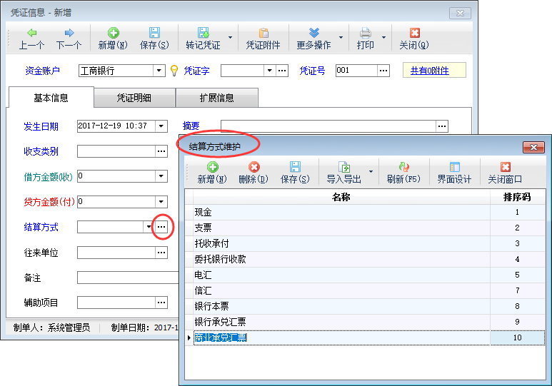 紅管家出納記賬軟件內可以維護銀行日記賬憑證的結算方式,銀行日記賬憑證的結算方式是必填項,可從下拉列表中選擇。結算方式能夠概要的說明辦理結算業務的具體組織方式,主要內容包括:商品交易貨款支付的地點、時間和條件,商品所有權轉移的條件,結算憑證及其傳遞的程序和方法等。本篇文章以紅管家出納記賬軟件專業版為例詳細介紹一下如何維護銀行日記賬憑證結算方式? 1、可以在基礎資料里面維護銀行日記賬結算方式。 在功能導航窗點擊“基礎資料”—》“結算方式維護”即可打開“結算方式維護”界面,如圖1所示,在結算