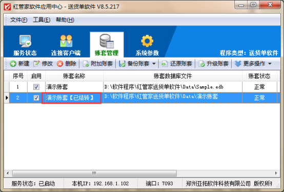 紅管家送貨單軟件、亞拓管理軟件等支持對賬套進行結轉新開賬操作。結轉新開賬一般用于年底結存新開賬,該結存操作不是必需的,如需要跨年查詢,可以不進行年結轉,軟件支持多年賬處理。     本篇文章以送貨單軟件為例,示范下如何對賬套進行結轉新開賬,新架構版本送貨單結轉新開賬功能在應用中心程序—》賬套管理—》更多操作中進行結轉,如下圖1所示:圖1     點擊“結轉新開賬”會彈出結轉新開賬界面,分成兩步操作,第一步:結轉操作提示;第二步:設置結轉截止日期。如下圖2所