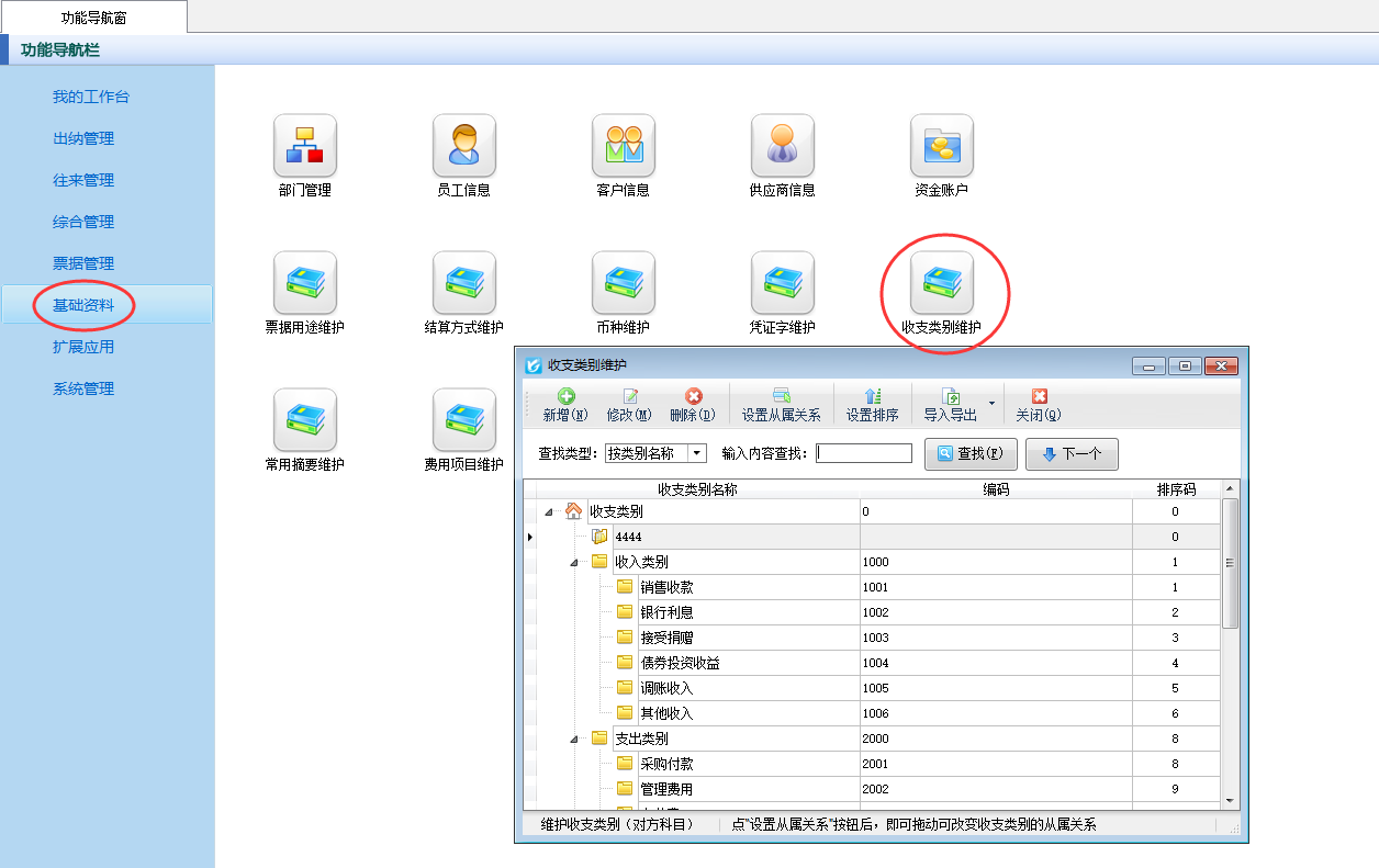 紅管家出納記賬軟件是一款針對各類企事業單位財務出納記賬開發的,集現金日記賬記賬與點驗、銀行日記賬記賬與核帳、應收應付往來賬管理、票據管理(支票管理、承兌匯票管理)、發票管理、工資管理、個人借款管理為一體的出納管理記賬軟件。    新增憑證時在“選擇收支類別”窗口可新增、修改收支類別,但是此界面不支持刪除收支類別(如下圖一所示),部分用戶會問到如何刪除收支類別,本篇文章我們以出納記賬軟件專業版為例來詳細介紹一下出納記賬軟件中如何維護收支類別?圖一 新增憑證信息    功能導航窗點擊“基礎資料”—》“