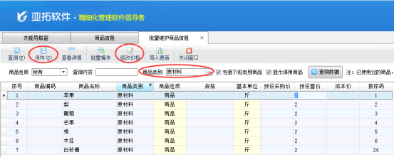 亞拓管理軟件、紅管家送貨單軟件、紅管家倉庫管理軟件等支持批量維護商品信息,可批量維護商品信息的價格、規(guī)格等信息。可以按照商品類別進行分類維護。 批量維護商品信息需要操作員有操作權(quán)限(系統(tǒng)管理員默認(rèn)具有所有權(quán)限),如何設(shè)置操作員有批量修改商品信息的權(quán)限,操作步驟如下:系統(tǒng)管理員登錄軟件,打開“系統(tǒng)管理”→“操作員及授權(quán)”,選擇要添加權(quán)限的操作員,打開“其他操作權(quán)限”勾選上要選擇的權(quán)限,保存權(quán)限設(shè)置。具體如圖1所示:圖1 權(quán)限設(shè)置完成后,在功能導(dǎo)航窗選擇