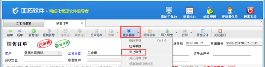 亞拓管理軟件內(nèi)采購訂單及銷售訂單執(zhí)行狀態(tài)分為未執(zhí)行、部分完成、已完成、和已中止共四種狀態(tài),但是部分用戶不清楚這四種執(zhí)行狀態(tài)分別是什么含義,本篇文章我們以銷售訂單為例來詳細介紹一下銷售訂單執(zhí)行狀態(tài)的含義?一、未執(zhí)行 新增的銷售訂單,保存審核后默認(rèn)處于“未執(zhí)行”狀態(tài),未執(zhí)行狀態(tài)的銷售訂單內(nèi),其單據(jù)明細中每個商品明細的執(zhí)行數(shù)量(即已完成數(shù)量)為0。 二、部分完成 銷售出庫單開單時軟件支持引用銷售訂單進行發(fā)貨出庫,保存并審核銷售出庫單后,軟件會自動更新相應(yīng)銷售訂單的單據(jù)