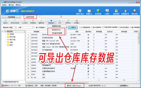 信管飛RMS支持倉庫庫存查詢功能,倉庫庫存查詢可以查看存貨的實時庫存情況,包括庫存數(shù)量、庫存成本情況等,同時支持導出倉庫庫存數(shù)據(jù)。若操作員賬號登錄軟件無法導出倉庫庫存數(shù)據(jù),通常源于操作員權限未啟用,本篇文章為您呈現(xiàn)高效解決方案。 演示視頻觀看鏈接:操作員無法導出倉庫庫存數(shù)據(jù),如何解決演示視頻 在功能導航窗點擊“系統(tǒng)管理”—》“操作員及授權”打開操作員管理及授權界面,選擇操作員賬號“張亞”,然后在其右側(cè)的功能模塊權限內(nèi)選擇“庫存查詢”,將倉庫庫存查詢的“導出”權限勾選上,然后保存權限設置