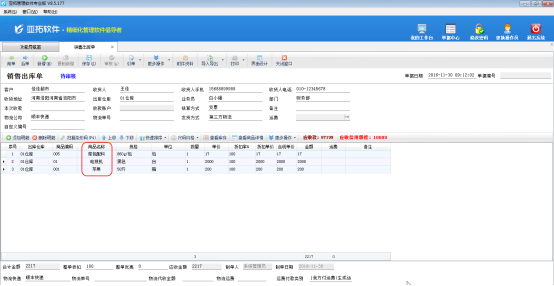亞拓管理軟件和紅管家送貨單軟件在新增或修改業務單據時,都支持對單據明細進行快速排序。軟件中單據明細列表默認按照選擇商品的先后順序進行排序,如果用戶想根據商品名稱或者商品編碼對單據明細進行排序,可以使用“快速排序”功能。下面我們以亞拓管理軟件專業版的銷售出庫單為例介紹一下對單據明細快速排序的操作方法。 登錄軟件,在功能導航窗點“銷售管理”—》“銷售出庫單”即可進入“銷售出庫單”界面,新增一個銷售出庫單添加幾個商品,點“快速排序”,包括“按商品編碼排序”、“按商品名稱排序”、“按規格排序”、“按商品名稱+規格排序”這四種快速