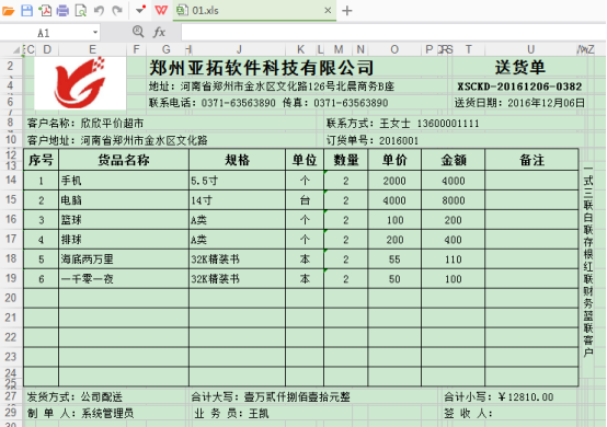 亞拓管理軟件、紅管家倉庫管理軟件、紅管家送貨單軟件、紅管家出納記賬軟件等軟件內都提供的有打印預覽及打印功能,可以打印送貨單、送貨明細對賬單及各類統計報表。多數用戶除了打印送貨單,還會將送貨單或者送貨明細對賬單的打印預覽效果導出為Excel文件直接發給客戶與客戶進行對賬。打印模板的打印預覽圖如何導出為Excel文件呢?下面我們以紅管家送貨單軟件的送貨單模板為例詳細介紹下打印預覽導出為Excel文件的步驟。 登錄紅管家送貨單軟件,打開一個送貨單模板打印預覽界面,如圖1所示。圖1 打印預覽效果圖 &nbs