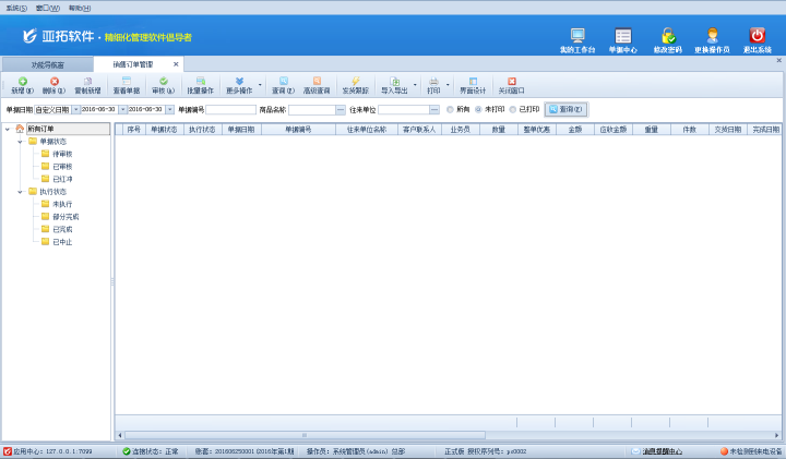 亞拓管理軟件、紅管家倉庫管理軟件、紅管家票據(jù)打印軟件、紅管家送貨單軟件、紅管家財務(wù)出納記賬軟件等軟件內(nèi)都提供了多種不同的界面風(fēng)格,不同的用戶可以根據(jù)自己的個人喜好選擇不同的界面風(fēng)格,下面我們以亞拓管理軟件為例詳細(xì)介紹一下進(jìn)銷存管理軟件內(nèi)如何更換界面風(fēng)格。 亞拓管理軟件內(nèi)提供了3種不同的界面風(fēng)格(標(biāo)準(zhǔn)系統(tǒng)風(fēng)格、灰白經(jīng)典風(fēng)格、藍(lán)色情懷風(fēng)格),軟件安裝后默認(rèn)為“灰白經(jīng)典風(fēng)格”,如下圖所示。灰白經(jīng)典風(fēng)格 登錄軟件后在軟件的左上角菜單欄內(nèi)點擊“系統(tǒng)”——“更換界面風(fēng)格”可以隨意更換不同的界面風(fēng)格