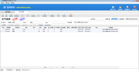 生產管理功能是亞拓管理軟件標準版及以上版本可以購買的擴展功能模塊,可適應中小制造企業(工廠)生產業務管理需要。軟件通過業務單據為主線,將生產業務的核心流程有效進行串聯,可有效的管理生產任務下單、生產原材料出入庫、成本核算等業務。生產管理包括了生產計劃單、生產任務單、生產領料出庫單、生產成品入庫單、生產退料入庫單、費用分配單、智能生產計劃、生產模板。下面我們介紹一下生產任務單的使用方法。 生產任務單即實際加工生產單,用于執行生產計劃,進入實際生產階段。軟件中生產任務單不是必須使用的,可以不錄入生產任務單,直接開“生產領料出