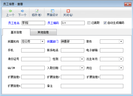 亞拓管理軟件、紅管家倉(cāng)庫(kù)管理軟件、紅管家票據(jù)打印軟件、紅管家財(cái)務(wù)出納記賬系統(tǒng)、紅管家送貨單軟件都支持對(duì)公司員工信息的管理。員工信息管理實(shí)現(xiàn)員工資料的維護(hù),可對(duì)員工顯示順序進(jìn)行設(shè)置,軟件都支持通過(guò)Excel文件導(dǎo)入員工資料。下面我們以亞拓管理軟件為例介紹下在軟件中如何管理員工信息。 登錄軟件,在功能導(dǎo)航窗中點(diǎn)擊“基礎(chǔ)資料”—》“員工信息”,即可進(jìn)入“員工信息”維護(hù)功能,其界面如下圖所示: 新增員工:點(diǎn)“新增”按鈕可以增加員工信息。 修改員工信息:點(diǎn)“修