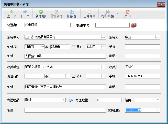紅管家快遞單打印軟件是亞拓軟件針對企事業單位票據管理及打印需求而開發的一款快遞單套打軟件,主要包括快遞單管理、快遞單打印模板、快遞單打印、快遞單查詢等功能。               紅管家快遞單打印軟件目前支持郵政EMS特快專遞單打印、順豐速運快遞單打印、申通快遞單打印、圓通快遞單打印以及其他物流運單打印。打開要打印的快遞單模板,輸入相關快遞單詳情,保存后,先預覽快遞單打印效果圖,確認無誤后,可以點擊打印,打印該新增的快遞單