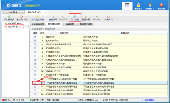 在當(dāng)今企業(yè)的財務(wù)管理中,出納工作的高效與準(zhǔn)確性至關(guān)重要,而多賬戶管理往往成為一項挑戰(zhàn)。特別是多名出納多賬戶同時登記日記賬時,如何避免重復(fù)登記導(dǎo)致數(shù)據(jù)混亂,確保數(shù)據(jù)安全,成為企業(yè)關(guān)注的重點。為此,專業(yè)的出納記賬軟件應(yīng)運而生,其中信管飛出納記賬軟件以其強大的權(quán)限管理功能脫穎而出。 該軟件支持設(shè)置多個操作員,每個操作員僅能查看到自己負(fù)責(zé)的資金賬戶,有效解決了多人同時操作時的賬戶混淆問題。在系統(tǒng)參數(shù)配置界面,只需簡單勾選“啟用資金賬戶權(quán)限控制”參數(shù),即可開啟這一功能。 系統(tǒng)管理員可為每位操作員