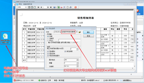 進銷存管理軟件、信管飛倉庫管理軟件、信管飛送貨單軟件、信管飛出納記賬軟件等軟件內都提供的有打印預覽及打印功能,可以打印送貨單、送貨明細對賬單及各類統計報表。多數用戶除了打印送貨單,還會將送貨單或者送貨明細對賬單的打印預覽效果導出為Excel文件直接發給客戶與客戶進行對賬。遇到打印模板的打印預覽圖不能正常導出為Excel文件,該如何解決呢?下面我們以進銷存軟件的銷售對賬單模板為例詳細介紹下打印預覽無法導出為Excel文件,如何解決? 出現上圖提示信息窗口,一直處于正在準備報表窗口無法導出Excel文