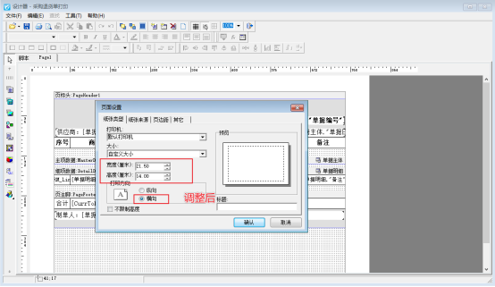 信管飛系列軟件支持自定義設計打印模板格式,打印預覽顯示正常,遇到紙張打印出來內容缺失一部分的問題。以采購退貨單打印模板為例,示范下如何解決打印缺失一部分內容的問題? 經檢查,電腦可以正常打印其他文檔,并且打印模板預覽導出PDF文件也可以正常打印。解決方式:調整打印模板的橫縱方向。 單據界面點擊打印----打印格式設計----點擊設計格式,進去模板設計器界面,在模板設計器界面調整打印紙張頁面設置。 在打印