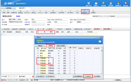 在現(xiàn)代企業(yè)管理中,進(jìn)銷存軟件扮演著至關(guān)重要的角色。通過精確的數(shù)據(jù)處理和高效的流程管理,進(jìn)銷存軟件能夠顯著提升企業(yè)的運(yùn)營效率。其中,自定義計(jì)算公式功能,更是確保數(shù)據(jù)準(zhǔn)確性的關(guān)鍵所在。本篇文章以“信管飛RMS軟件”為例介紹下開單界面中如何自定義計(jì)算公式,并設(shè)置數(shù)值四舍五入取整。 示例配置面積公式:長*寬=面積 功能導(dǎo)航欄點(diǎn)擊“銷售管理”—》“銷售出庫單”打開開單界面,然后點(diǎn)擊工具欄“界面設(shè)計(jì)”按鈕,打開界面設(shè)計(jì)窗口,可自定義軟件界面顯示數(shù)據(jù)項(xiàng)及數(shù)據(jù)項(xiàng)取值