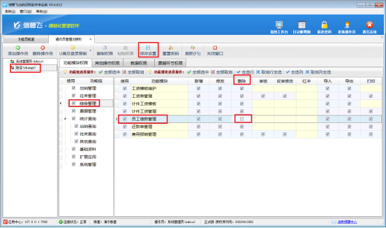 信管飛出納記賬軟件能夠有效實(shí)現(xiàn)企業(yè)員工借款與還款的流程化登記管理,顯著提升企業(yè)管理效率。有部分用戶在使用中,為了避免出現(xiàn)操作員誤刪借款記錄的情況,需要操作員沒有刪除借款單的權(quán)限,本篇文章以“信管飛出納記賬軟件”為例介紹一下如何設(shè)置操作員不可刪除員工借款單? 系統(tǒng)管理員登錄軟件,在功能導(dǎo)航窗點(diǎn)擊“系統(tǒng)管理”—》“操作員及授權(quán)”,進(jìn)入“操作員管理及授權(quán)”界面,選擇操作員“張亞”,在其右側(cè)的功能模塊權(quán)限內(nèi)選擇“綜合管理”模塊,將員工借款管理的“刪除”權(quán)限勾選取消,然后保存設(shè)置,如下圖所示。 &