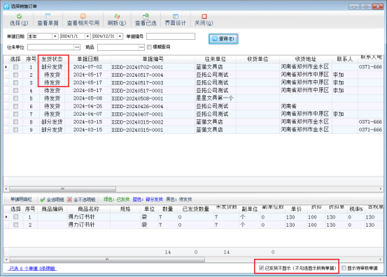 信管飛RMS軟件是集“采購管理、銷售管理、庫存管理、往來賬管理”一體的進銷存軟件,軟件支持引用訂單生成對應的采購入庫單和銷售出庫單,極大地提高了工作效率。然而,在部分用戶的實際使用過程中,點擊引單窗口會顯示所有已開的訂單,包括已發貨的訂單,這可能會在一定程度上影響操作的便捷性和效率。本篇文章以“信管飛RMS軟件”為例介紹下如何設置已發貨訂單不顯示? 點擊“銷售管理”-》“銷售出庫單”,進入銷售開單界面,工具欄上方點擊“引單”按鈕,選中銷售訂單進行引單,此時引單窗口顯示所有已開訂單單據,如圖:&nb