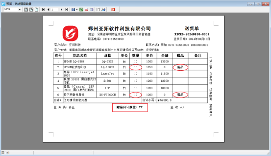 在實際產品銷售過程中,會出現贈送客戶贈品的情況,信管飛RMS、信管飛送貨單、信管飛倉庫管理軟件開單時都支持錄入贈品商品,部分客戶在錄入贈品開單之后,打印出單據需要統計贈品數量,不知道打印模板如何進行設計,信管飛軟件支持自定義打印模板,本文介紹一下打印模板如何統計贈品數量? 此文章相關演示視頻:打印模板如何統計贈品合計數量 新開一張銷售單,勾選贈品,如圖所示: 在單據界面點擊“打印”-----“打印格式設