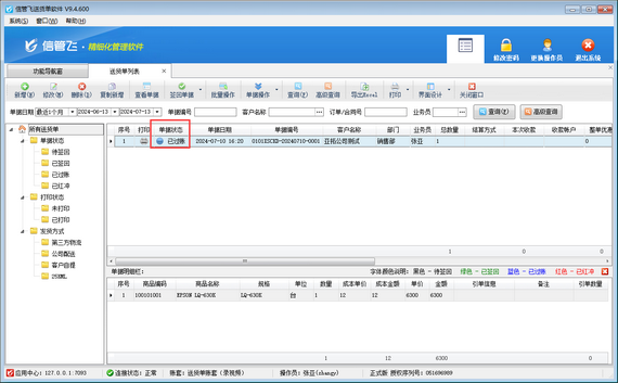 信管飛送貨單軟件通過狀態控制實現簡單的流程管理(待簽回—》已簽回—》已結賬),有用戶在過賬單據時,系統彈出提示信息“您沒有過賬單據的權限,請與系統管理員聯系!”,如下圖所示。 演示視頻觀看鏈接:操作員沒有過賬送貨單的權限,如何解決演示視頻 出現此問題的原因是:當前登錄的操作員賬號沒有過賬單據的權限,解決方法如下:使用系統管理員賬號登錄軟件,在功能導航窗點擊“系統管理”—》“操作員及授權”打開操作員管理及授權界面,選擇操作員賬號,在“其他操作權限”界面將“過賬單據”權限勾選上,然后保存權