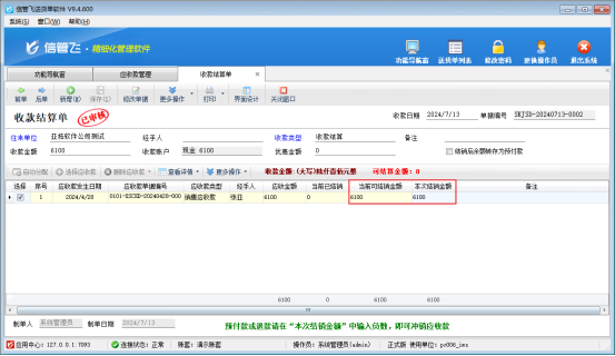 收款結算單用來登記收款信息(收款對象即客戶、收款賬戶、收款金額、經手人等),并結銷應收款記錄。正常情況下,應收金額為多少,即客戶支付我們多少貨款,但是部分情況下用戶在開單保存時出現提示信息該如何處理,本篇文章我們介紹下保存結算單提示“應收款列表中的本次結銷金額不能大于可結銷金額!”該如何解決?提示信息如下圖所示: 此文章相關演示視頻:應收款列表中的本次結銷金額不能大于可結銷金額演示視頻 出現此現象的原因:本次結銷金額大于當前可結銷金額時保存單據會提