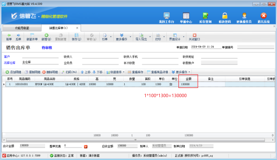 信管飛軟件支持根據其他數據計算需求自定義配置計算公式,部分用戶反饋配置計算公式后,結果沒有根據公式進行計算,本文章介紹下計算功能不能計算,該如何解決?     示例配置公式:金額=面積*數量*單價     首先,要確保公式配置正確的前提下,金額顯示為0沒有按照公式計算,如圖所示:     登錄軟件,點擊“系統管理”—》“系統參數配置”—》“業務參數”下勾選參數”計算公式按設定順序進行運算”,然后點擊“保存”按鈕,關閉當前界面,