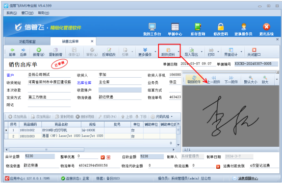 在數字化飛速發展的今天,如何快速、準確地傳遞信息,已成為企業提升競爭力的關鍵。信管飛軟件功能將微信這一強大的社交工具與企業管理相結合,讓您輕松實現消息的實時發送、接收和簽收。 軟件中支持設置開單自動發送微信消息,客戶收到微信消息可點擊詳情查看詳情和收貨進行簽收操作。效果如下圖所示: 手機簽收完成會自動回傳到軟件中,在銷售單對應的附件資料中可查看到簽字,如下圖所示:使用這款軟件功能,您將擁有以下顯著優勢: