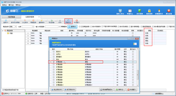 信管飛RMS、信管飛倉庫管理軟件等可以在軟件使用前維護好商品信息,方便開單直接選擇,有客戶存在商品信息除單位、商品編碼、規格外還有其他固定的商品屬性,軟件的商品信息維護界面支持擴展信息,可以把其他固定的商品屬性內容輸入在擴展信息中,如下圖所示,自定義“商品擴展信息1”為商品“顏色”。 有用戶希望自定義的商品其他擴展屬性可在倉庫庫存查詢界面顯示,本文介紹一下操作方法。 演示視頻觀看鏈接:如何設置倉庫庫存查詢界面可顯示商品擴展信息演示視頻 在軟件界面右上