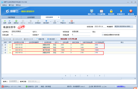 應收、應付賬款管理是現代企業資金管理的重要組成部分,其管理效果的好壞直接影響到企業經營的成敗。 信管飛出納記賬軟件支持往來應收應付款管理功能,可使用客戶預付款沖銷銷售應收款。如果客戶預付款已結銷,如何查看此筆客戶預付款實際沖銷的是哪筆應收款呢,本篇文章介紹一下操作方法。 演示視頻觀看鏈接:出納軟件如何查看客戶預付款沖銷了哪筆應收款演示視頻 如下圖所示,客戶“亞拓公司測試”客戶預付款5000元,系統顯示已結銷,但是現在需要查看這筆客戶預付款實際結銷了哪