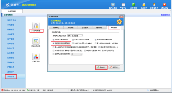 此文章相關演示視頻:日記賬憑證界面如何顯示擴展信息演示視頻 信管飛RMS軟件(標準版和專業版)有出納管理模塊,支持新增現金/銀行日記賬憑證,在新增日記賬憑證中有的客戶需要填寫擴展信息,軟件支持在新增憑證時錄入擴展信息。本篇文章以“信管飛RMS軟件專業版”為例,介紹下如何在憑證界面啟用擴展信息? 功能導航欄點擊“系統管理”—》“系統參數配置”,在“出納參數”界面勾選“出納憑證啟用擴展信息”,勾選之后點擊