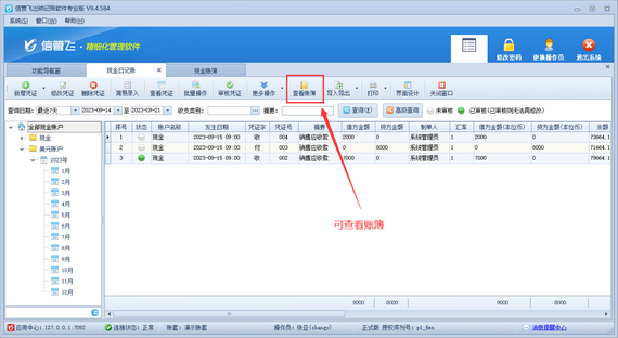 信管飛出納記賬軟件內包含豐富的記賬統計表格,如現金賬簿、銀行賬簿、資金日(月)報表、收支類別匯總表等。有用戶在使用軟件時無法查看出納賬簿,如下圖所示。 演示視頻觀看鏈接:操作員無法查看賬簿,如何解決演示視頻 出現此問題的原因是:當前登錄的操作員賬號沒有“現金賬簿”和“銀行賬簿”的查看權限,解決方法如下:使用系統管理員賬號登錄軟件,在功能導航窗點擊“系統管理”—》“操作員及授權”打開操作員管理及授權界面,選擇操作員賬號,在其右側的功能模塊權限內選擇“出納查詢”,將“現金賬簿”和