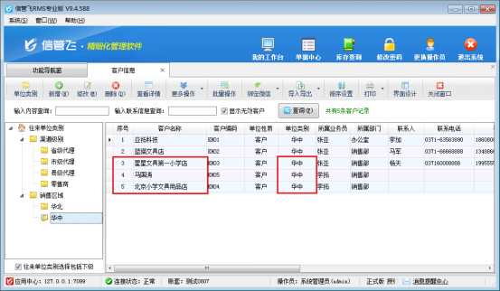 信管飛管理軟件、信管飛倉庫管理軟件和信管飛送貨單軟件都包括對往來單位信息的管理。往來單位信息集中管理和維護往來單位資料,可以對往來單位分類管理。在軟件中如何快速批量修改往來單位類別呢?下面我們以信管飛RMS專業版為例詳細介紹下如何批量修改往來單位類別。 此文章相關演示視頻:如何批量修改往來單位類別演示視頻 在功能導航窗中點擊“基礎資料”—》“客戶信息”,即可進入“客戶信息”界面,如圖所示。 以上圖為例,