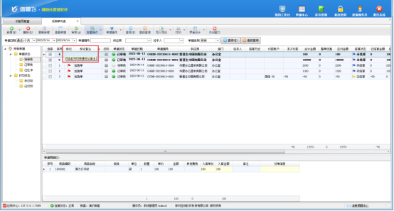此文章相關演示視頻:如何對采購單/銷售單列表進行批量標記備注演示視頻 信管飛RMS軟件、信管飛倉庫管理軟件、信管飛送貨單軟件等都支持對采購單列表、銷售單列表進行標記備注,為了提高效率,軟件內支持批量對列表進行標記,以“信管飛RMS”為例介紹下如何進行批量標記備注? 功能導航窗點“采購管理”—》“采購單列表”即可進入“采購單列表”界面,在采購單列表界面,點擊工具欄“批量操作”按鈕,進入批量操作模式,勾選需要的單據記錄,之后點擊“單據操作”—》“標記備