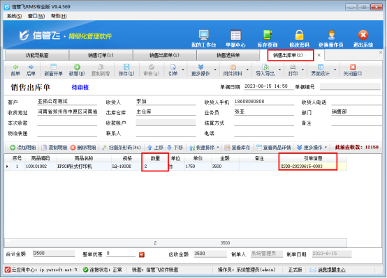 針對部分客戶銷售流程,先下銷售訂單,銷售出庫單引單銷售訂單出庫,訂單變為已完成,銷售退貨后需要影響訂單的未完成數量,可以繼續出庫,信管飛RMS軟件支持退貨直接引單訂單,影響訂單數量,本文示范下如何操作? 首先需啟用參數,功能導航窗點擊系統管理—系統參數配置,業務參數中勾選啟用參數“銷售(采購)退貨單可引用訂單”,保存參數設置,如下圖所示: 參數設置完成后,銷售訂單商品“EPSON針式打印機”訂單數量為5,銷售出庫單引用此訂單出庫5個,訂單執行狀態變為
