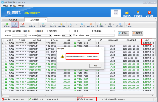 信管飛送貨單軟件是集銷售開單、打印送貨單、管理應收款一體的軟件,軟件支持直接新增應收款,比如期初應收,軟件可設置多個操作員,為避免操作員誤修改其他人員增加的應收款,可設置操作員權限進行控制。本文以“信管飛送貨單軟件”為例進行示范。 在功能導航窗點擊“系統管理”—“操作員及授權”,在操作員及授權界面,選擇操作員“張亞”,打開其他操作權限,取消勾選權限“可修改其他人員錄入的應收款”,然后保存設置,如下圖所示: 使用操作員“張亞”登錄軟件,打開“業務處理”
