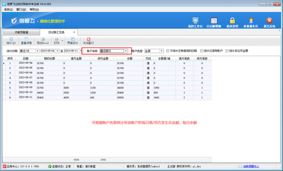 演示視頻:出納記賬軟件如何查詢每日借/貸方發生總金額演示視頻 信管飛出納記賬軟件是一款針對各類企事業單位財務出納記賬開發的,集現金日記賬記賬與點驗、銀行日記賬記賬與核帳、應收應付往來賬管理、票據管理(支票管理、承兌匯票管理)、發票管理、工資管理、員工借款管理、費用報銷管理等為一體的財務出納管理記賬軟件。 部分用戶在日常登記完出納憑證后,需要查詢每日借/貸方發生總金額,如何查詢? 在功能導航窗點擊“出納管理”,右側相關查詢統計下,點擊“日記賬匯總表”打