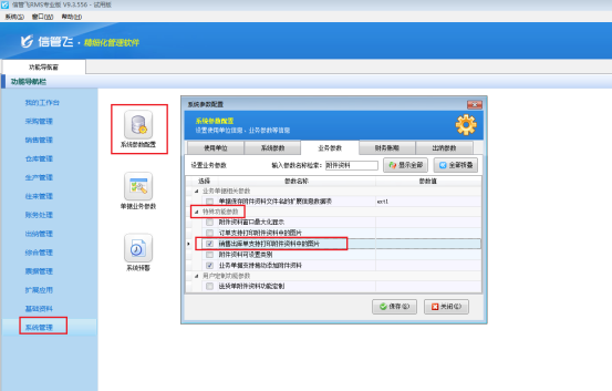 信管飛RMS是進銷存一體化的軟件,支持開單上傳附件資料和開銷售出庫單可打印附件資料圖片,如果附件資料里面有多張圖片,那么如何一次性把附件資料的所有圖片都打印出來呢,本文以“信管飛RMS專業版”示范下如何設置? 在功能導航窗點擊“系統管理”—》“系統參數”,選擇“業務參數”“特殊功能參數”中的“銷售出庫單支持打印附件資料中的圖片”,勾選參數并保存配置,如下圖所示: 參數設置完成后,新開銷售出庫單,保存單據后點擊“附件資料”上傳附件資料圖片,如下圖所示: