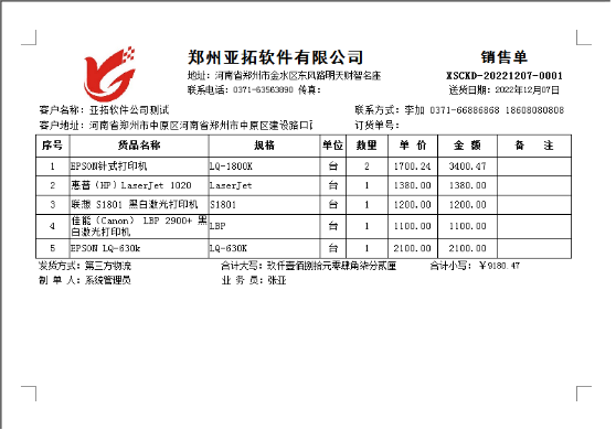此文章相關演示視頻:打印模板如何根據單據明細設置打印行數演示視頻 亞拓軟件旗下的信管飛送貨單軟件、信管飛RMS軟件、信管飛倉庫管理軟件,都支持開單打印單據,軟件中內置了十幾種打印模板供客戶選擇使用,也支持自定義設計打印模板,軟件內置打印模板設置自動增加空行,根據客戶需要模板不顯示空白行,我們以送貨單軟件為例設置下打印模板根據單據明細顯示打印行數。未調整前打印預覽顯示如下圖: 導航欄選擇“業務處理”—》“新開訂單”—》打印—》打印格式設計—》設計格式,