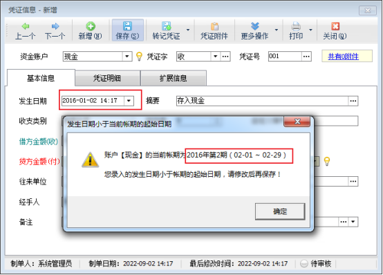 出納記賬軟件登記日記賬憑證時,發生日期默認取電腦操作系統日期,另外如需要補錄出納憑證,系統也支持修改日記賬憑證的發生日期進行補錄出納憑證,部分用戶在修改完日記賬發生日期保存憑證時可能會出現“您錄入的發生日期小于賬期的起始日期,請修改后再保存!”的提示,這是因為該憑證錄入的發生日期小于該賬戶賬期的起始日期導致的。本篇文章介紹一下該如何解決這個問題。 在功能導航窗點擊“出納管理”—》“出納期末結賬”,進入出納期末結賬界面,選中當前使用賬戶,點擊反結賬按鈕,反結賬完成后,相應賬戶回退到上一個賬期,賬期的