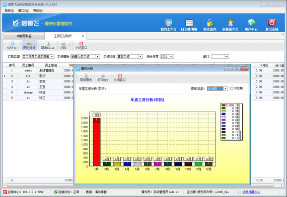 出納記賬軟件支持工資管理功能,支持自定義工資模板管理員工工資單,可根據(jù)設(shè)置的工資模板快速生成員工工資單,提高了企業(yè)管理效率。工資匯總統(tǒng)計(jì)可根據(jù)匯總類(lèi)型、工資模板、工資項(xiàng)目、統(tǒng)計(jì)年度、月份等條件來(lái)進(jìn)行統(tǒng)計(jì)所有員工的工資情況,包括員工姓名、基本工資、應(yīng)發(fā)工資等數(shù)據(jù),本文詳細(xì)介紹一下如何查詢員工工資匯總表? 在功能導(dǎo)航窗點(diǎn)擊“綜合管理”—》“工資匯總統(tǒng)計(jì)”即可進(jìn)入工資匯總統(tǒng)計(jì)表界面,如下圖所示。 員工工資匯總統(tǒng)計(jì)表界面支持根據(jù)匯總類(lèi)型、工資模板、工資項(xiàng)目、統(tǒng)計(jì)年度、月份等條件來(lái)進(jìn)行統(tǒng)計(jì)所有員