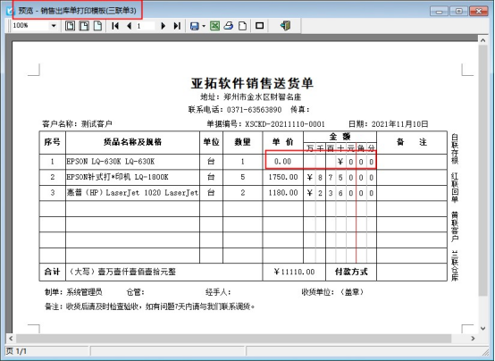 信管飛送貨單軟件等支持自定義設(shè)計(jì)打印模板,送貨單軟件中自帶了十幾種打印模板樣式,默認(rèn)打印模板格式在打印金額和單價(jià)為0的時(shí)候不顯示零值,空白顯示,如下圖所示: 有用戶需要當(dāng)單價(jià)為0時(shí),打印模板上顯示出0值,本文以送貨單軟件為例,示范下如何取消隱藏零值設(shè)置,在送貨單開(kāi)單界面打印下選擇“打印格式設(shè)計(jì)”。選擇需要修改的模板,點(diǎn)擊“設(shè)計(jì)格式”,進(jìn)入模板設(shè)計(jì)器界面。選擇明細(xì)欄的“單價(jià)”文本框,鼠標(biāo)點(diǎn)擊右鍵,在“隱藏零值”處單擊下,取消勾選符號(hào),然后保存模板就可以。如下圖所示:
