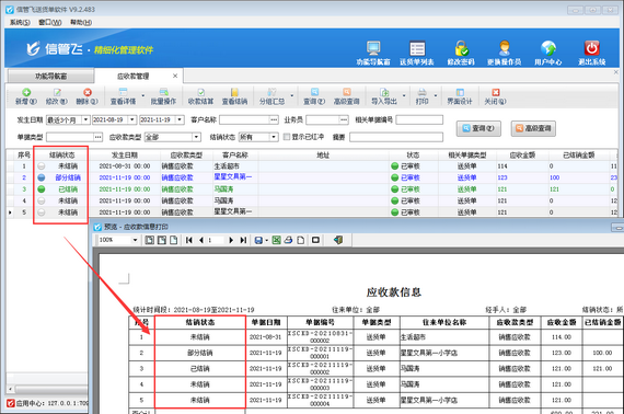 信管飛送貨單軟件內(nèi)置有多個(gè)打印格式模板,同時(shí)也支持自定義打印格式模板,部分用戶在應(yīng)收款管理界面自定義應(yīng)收款管理打印模板時(shí),會(huì)遇到如下圖所示問(wèn)題,結(jié)銷(xiāo)狀態(tài)內(nèi)容無(wú)法打印,本文介紹一下如何打印應(yīng)收款結(jié)銷(xiāo)狀態(tài)? 在應(yīng)收款管理界面點(diǎn)擊“打印”—》“打印格式設(shè)計(jì)”—》“設(shè)計(jì)格式”打開(kāi)模板設(shè)計(jì)器,將結(jié)銷(xiāo)狀態(tài)調(diào)用內(nèi)容更換為函數(shù):[IIF([應(yīng)收款信息.結(jié)銷(xiāo)狀態(tài)]=1,部分結(jié)銷(xiāo),IIF([應(yīng)收款信息.結(jié)銷(xiāo)狀態(tài)]=2,已結(jié)銷(xiāo),未結(jié)銷(xiāo)))],如下圖所示。 設(shè)置完成后,重新進(jìn)行打印預(yù)覽,即可正常打印應(yīng)收款結(jié)銷(xiāo)