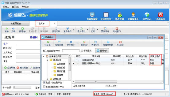 信管飛送貨單軟件、信管飛RMS軟件等都支持增加可登錄的操作員以及設置操作員的權限,有客戶需要操作員僅能對自己的客戶進行開單操作,無其他操作權限,這種應該如何控制?文本以“信管飛送貨單軟件”為例進行示范下。 演示視頻觀看鏈接:送貨單軟件如何設置操作員僅能開單和選擇自己的客戶權限? 一、添加操作員并設置權限僅有開單權限以及僅可查看自己的客戶權限。 在功能導航窗點擊“系統管理”—》“操作員及授權”,在操作員