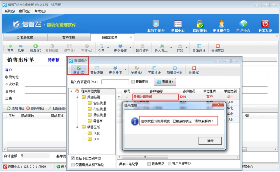 信管飛RMS軟件包含應收應付款功能,可對客戶和供應商設置應收應付信用額,客戶在信用額度內可先收貨后付款,對于超過信用額度的客戶,軟件支持在基礎資料—“客戶信息”中設置鎖定功能,不允許繼續開單,付款后可進行解鎖。本文以“信管飛RMS標準版為例”,示范下如何鎖定超出信用額度的客戶。超出信用額度的客戶“亞拓公司測試”在未設置鎖定前,開銷售出庫單審核單據會提示“當前往來單位將會超出應收信用額度,是否繼續”,點擊“是”仍可以保存成功,如下圖所示: 在功能導航窗點擊“基礎資料”—》“客戶信息”,在客戶信息界面選擇客戶“亞拓公司測試”,選擇工具欄“更多操作”下