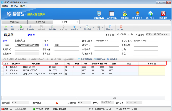 信管飛送貨單軟件、信管飛RMS軟件等都支持打印單據,軟件內置了十幾種打印模板以供使用。默認打印模板的金額是按財務樣式進行顯示的,默認金額格式是按7位顯示,只顯示到萬,如果出現金額超過萬位會顯示不出來(如下圖所示),本文以“信管飛送貨單軟件”為例,示范下如何修改金額樣式的顯示數字個數。     打開送貨單開單界面,點擊工具欄“打印”按鈕下的“打印格式設計”,進入打印格式設計界面,選擇打印模板后點擊“設計格式”進入模板設計器界面。在模板設計器界面。選擇金額文本框,鼠標右鍵選擇“屬性”,彈出屬性界面上找到數字個