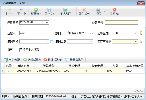 信管飛RMS是進銷存一體化軟件,可以管理商品進出庫功能,也可以管理員工借款情況,員工借款管理及還款管理可以對企業員工借款、還款進行流程化登記管理,提高了企業管理效率。下面我們介紹一下信管飛RMS專業版如何登記員工借款。 在功能導航窗點擊“綜合管理”—》“員工借款管理”即可進入“員工借款管理”界面,如下圖所示:圖1 新增借款單:點擊工具欄中的“新增借款單”按鈕,系統彈出“借款單信息”窗口,錄入借款日期、借款人、借款事由、借款金額等信息后點擊“保存”即可。如下圖所示:圖2 &nb